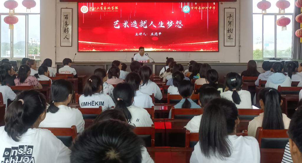 签约仪式上结束后,院长王燕平教授为砂河中学高中部学子作了《艺术造就人生梦想》的专题讲座。