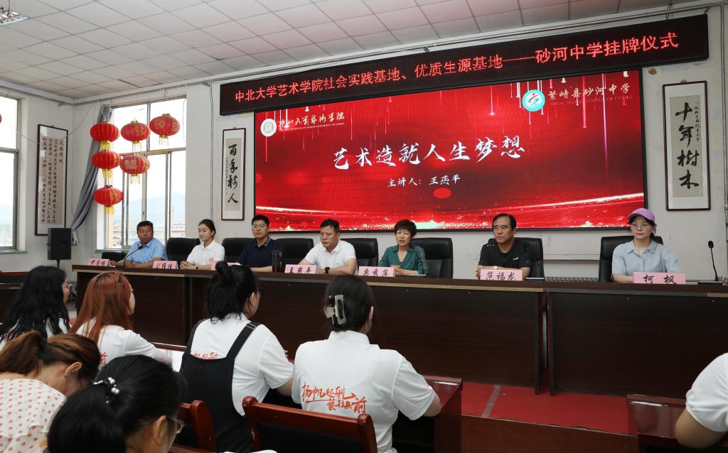 党委书记栗秀萍、院长王燕平、党委副书记田维飞及柯枫老师一行来到繁峙县砂河镇砂河中学慰问我院2022年扬帆起航暑期社会实践队。砂河中学党支部书记、校长尹月恒、县教育局局长助理范福龙等热情接待,并举行了社会实践基地挂牌仪式。
