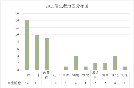由图2 可以看出,2015届毕业生40%以上来自于华北地区。20%来自华东地区。