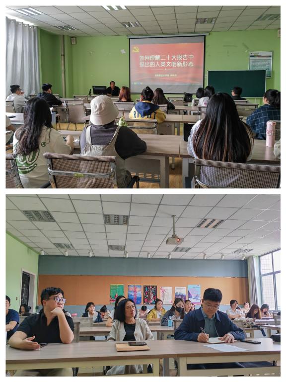 党委邀请校二十大精神宣讲团成员阚先学老师以《如何理解二十大报告中提出的人类文明新形态》为题,为全院教工党员和部分学生党员作了专题辅导,讲座由学院党委副书记田维飞主持。