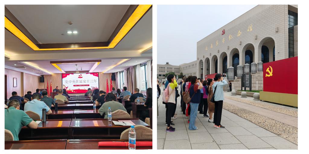 在延安革命纪念馆前,所有党员教师举起右拳,面向党旗,重温入党誓词。馆内,大家一边认真聆听讲解,一边仔细观看党中央在陕甘宁边区各个历史阶段的革命文献,了解陕北革命根据地的创建和发展及党中央在陕北的历史。一件件珍贵历史遗物,一张张黑白残破的老照片,一副副泛黄模糊的文字,真实再现了毛泽东等老一辈无产阶级革命家在延安艰苦卓绝的13年峥嵘岁月。
