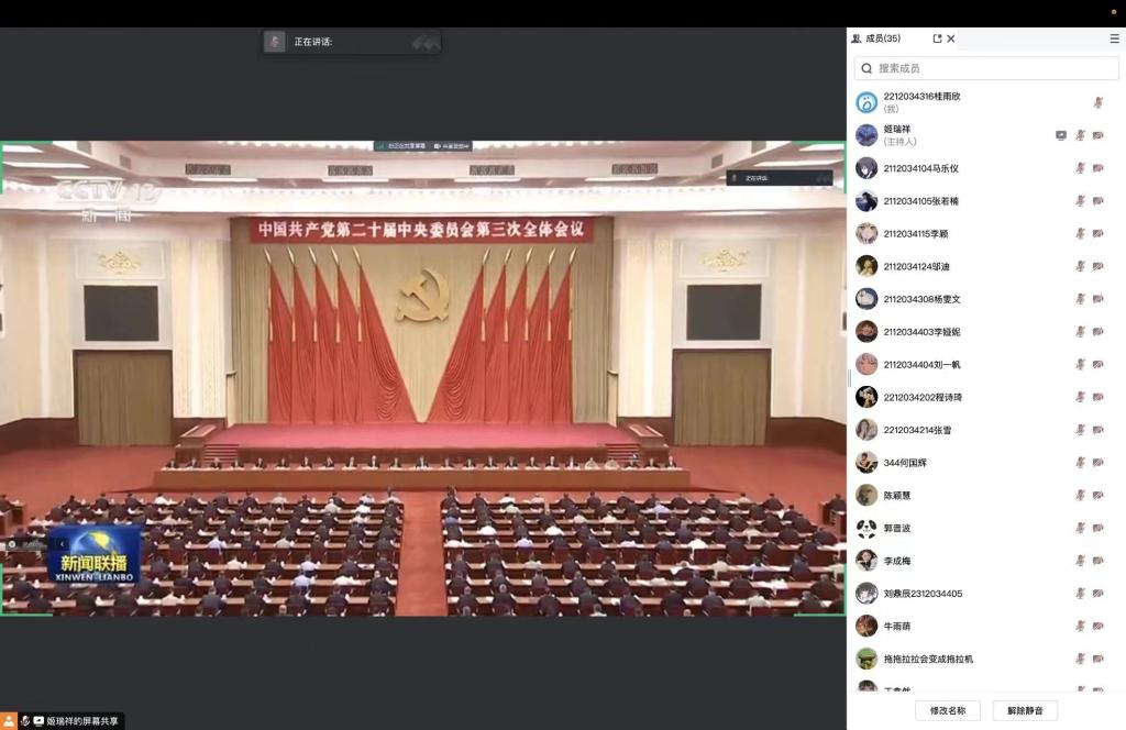 本科生第二党支部于2024年7月22日晚上21:30组织全体党员通过腾讯会议开展“深入学习贯彻党二十届三中全会精神”的专题学习会,全体支部党员、发展对象及入党积极分子参加学习。