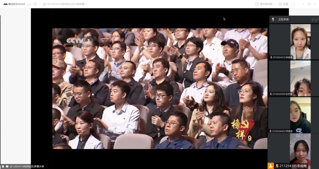 本科生第二党支部通过腾讯会议开展了以“汲取榜样力量,铸牢青春信仰”为主题的专题学习会,会上,党支部组织全体党员共同观看了《榜样9》专题节目,发展对象及入党积极分子进行了分组学习。