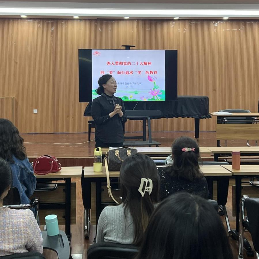荣幸地邀请到山西省教育科学研究院义务教育课程研究中心的赵靖主任,为我们带来了一场主题为《深入贯彻党的二十大精神,向“美”而行追求“美”的教育》的精彩美育讲座。